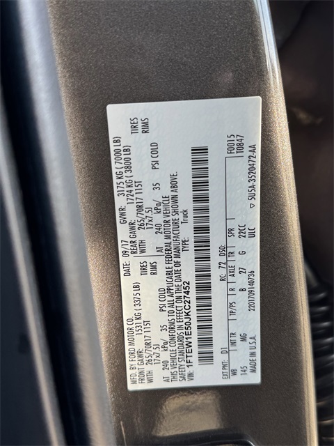 - VIN : 1FTEW1E50JKC27452