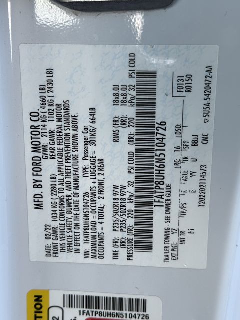 - VIN : 1FATP8UH6N5104726