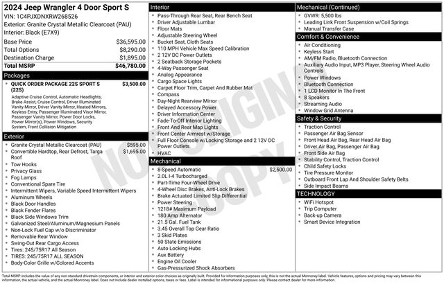With its impressive performance, rugged capabilities, and thoughtful amenities, the 2024 Jeep Wrangler Sport S is the perfect companion for those who seek adventure and demand more from their vehicle. Experience the thrill of the open road and discover the true essence of freedom with this remarkable SUV.