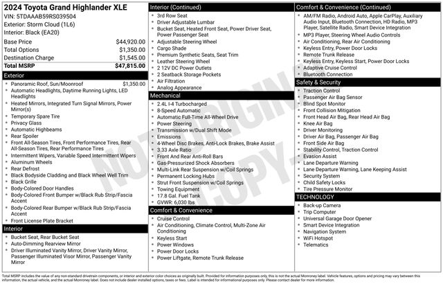 https://pearlandchryslercars.dealerleads.com/cars/Used/2024/Toyota/Grand+Highlander/XLE/169897282024 Toyota Grand Highlander XLE