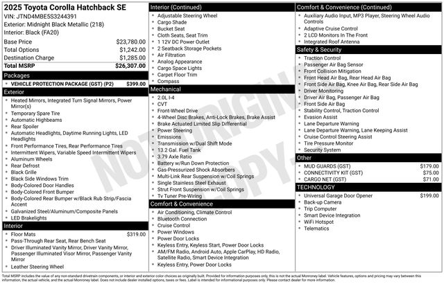 Discover the perfect balance of style, technology, and efficiency in the 2025 Toyota Corolla Hatchback SE. Experience the difference for yourself and visit our showroom today. We're confident you'll be impressed by this exceptional vehicle.